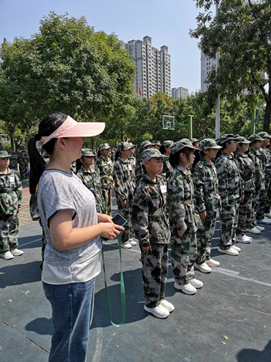 教官绝对是孩子们的榜样楷模。在第二天的军事训练中,各班级教官认真负责,严中有爱,以身作则。对于新项目,教官们会亲身示范,标准的动作让孩子们能够更快地掌握其中要领。对于孩子们在军训中遇到的各种问题、各种困难,各班级教官都能够及时关注、迅速解决。
