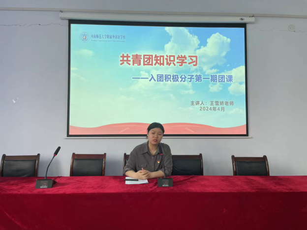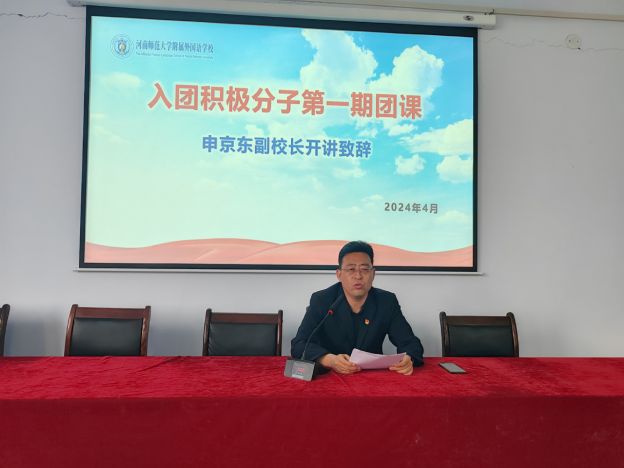 本次活动由学校团委书记赵文鹤主持。学校申京东副校长莅临活动现场,向学校第一期团课的开讲表示祝贺,并结合“如何树立正确的入团动机、如何发挥团员的模范和示范作用、如何接受团组织的长期考验”等方面,进行了重要讲话,希望同学们坚定正确的理想信念,按照共青团员的标准,在团组织的指引下,勇于开拓、不断前进,为团徽增光,为团旗添彩。