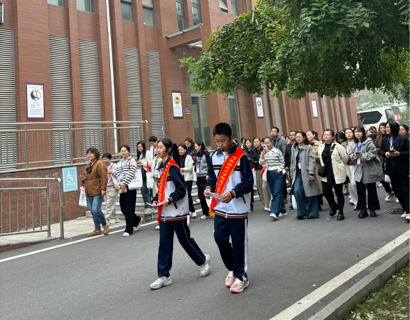 新乡学院带队领导和全体项目成员一行103人到达我校后,在梁孟月老师、陈玲老师和学生志愿者的引领下,先后参观了我校体育馆、外语角、太空种子园、绿韵种植园、音乐教室和舞蹈教室等,了解我校的办学特色和育人成果。研修班教师们也屡次驻足,仔细聆听讲解,对我校的深厚文化底蕴有了初步的了解,并对我校的教学模式和教学质量给予了高度评价。