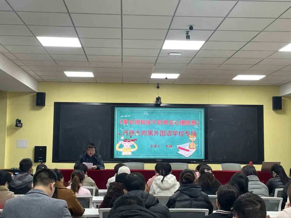 11月26日下午,为了进一步发挥家校社的协同育人功能,提升家长家庭教育能力,伟德官网下载苹果版附属外国语学校邀请国家心理咨询师、国家家庭教育指导师刘丽老师到校,组织七年级近200名家长代表,在致精楼四楼会议室开展了以《家长须知孩子的常见心理隐患》为题的家庭教育讲座。
