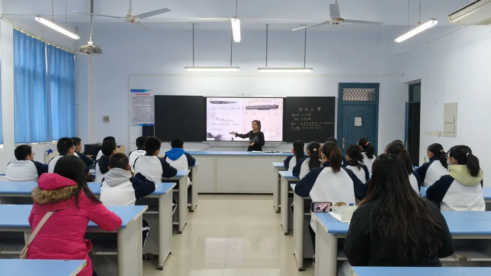 而后,老师们分成了三组分别观摩了常规音乐课、素质教育舞蹈课和合唱社团排练课。张蒙蒙老师执教的《阳关三叠》一课,从古诗词诵读导入初步引导学生建立音乐情感基调,在熟悉哼唱音乐旋律的基础上解析重难点,使学生感知琴歌音乐文化的艺术特征,在升华部分,张老师对古琴文化进行了详细的讲授,引发学生对和合文化产生思考,提升学生的文化理解素养。