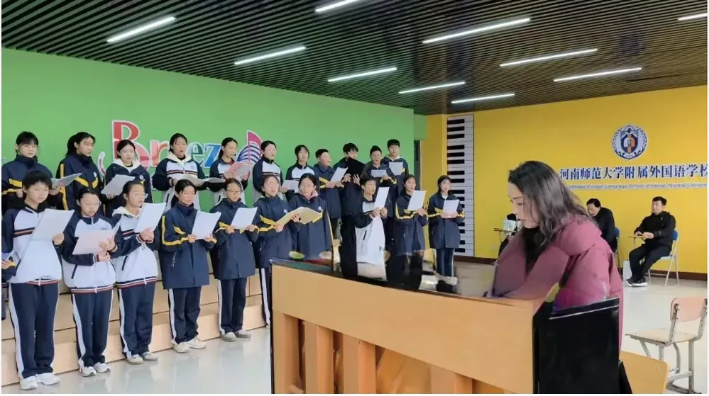 我校Breeze微风合唱团,向老师们展示了呼吸操和歌曲《花开忘忧》。Breeze合唱团成立于2019年,由白欣欣老师担任指挥。合唱团曾荣获新乡市“优秀社团”“文明社团”荣誉称号。在展示过程中,合唱团员以饱满认真的精神状态和统一、美妙的和声赢得了观摩老师的一致好评。