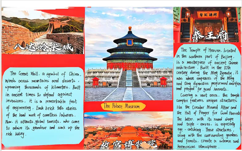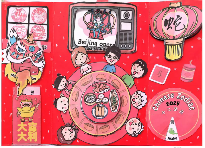 新学期,初二英语组又出新招!这次,同学们围绕新年、年夜饭、旅游、历史等主题,制作了精美的英语翻翻书。在动手创作中,他们用英文讲述中国故事,将中国文化与外语学习紧密融合,守住文化根脉,树立满满文化自信。每一页都饱含巧思,展示着独特新年故事,快来一同感受这场文化与审美的双重盛宴!