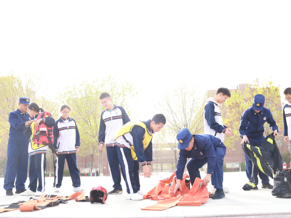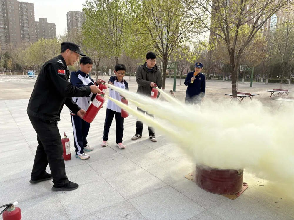 随后,红旗区消防大队的消防员们对各类消防器械进行了详尽的展示与专业讲解,并邀请师生和门卫师傅上台互动体验。