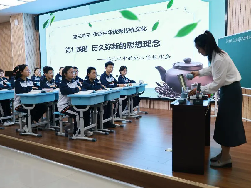 新乡市第四中学王玲云老师和伟德官网下载苹果版附属外国语学校七年级的学生共同完成了一节题为《历久弥新的思想理念》现场课。学生们在课堂上的精彩表现,展现了我校学生良好的精神风貌。