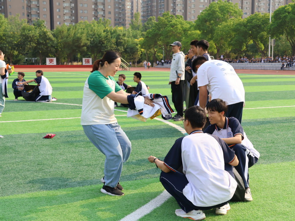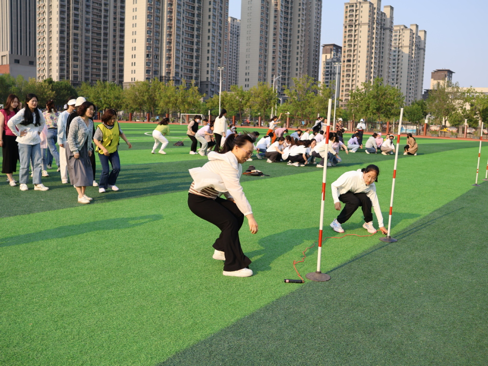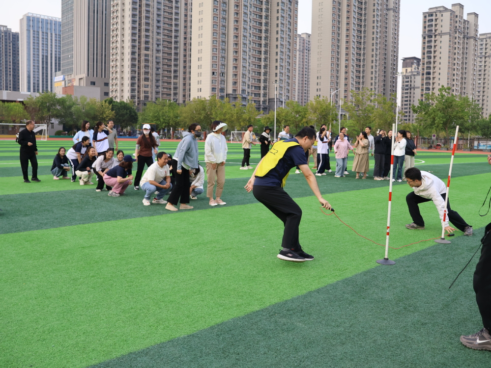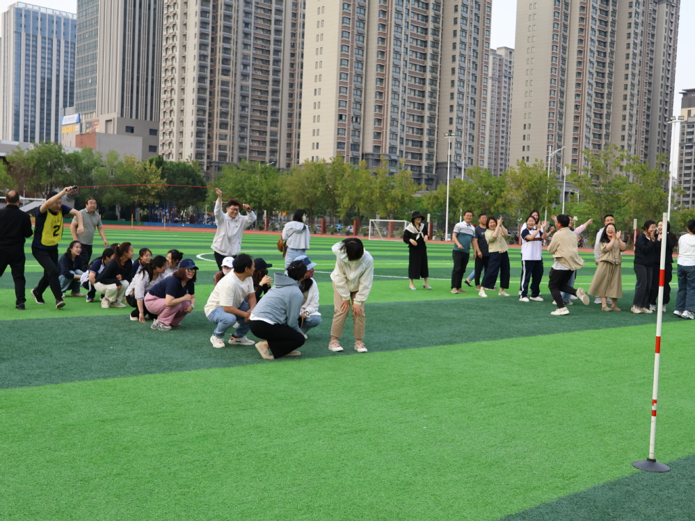 最后,教职工组进行了“穿越火线”项目的比赛。老师们相互配合、奋勇争先。赛场上掌声、加油声、喝彩声、欢呼声此起彼伏,吸引了大批学生围观。