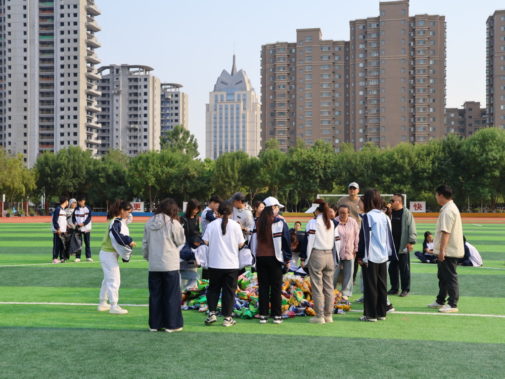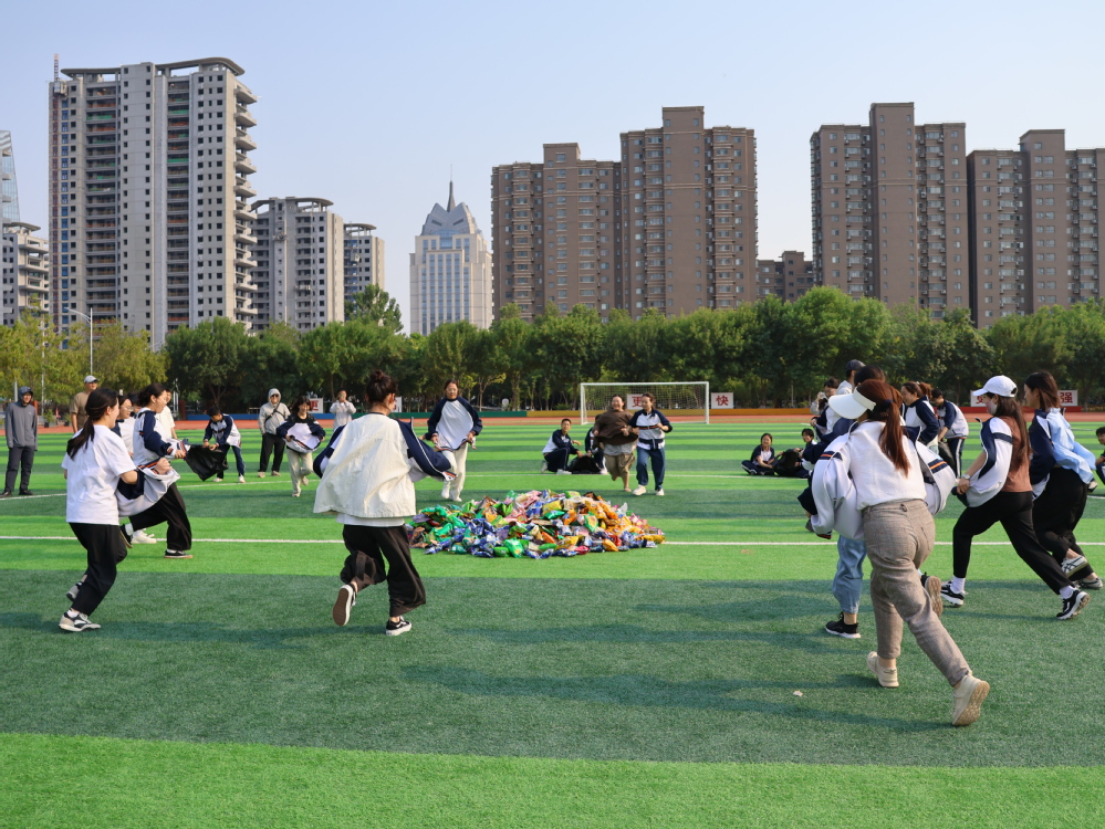 学生组比赛结束后,学校还精心设计了“彩蛋”环节——“抢零食大赛”。在成山的零食堆前,班主任老师们蜂拥而上,尽可能多的为自己的班级抢夺零食,场外学生纷纷为自己的班主任老师加油助威,将运动会的气氛推向了高潮。