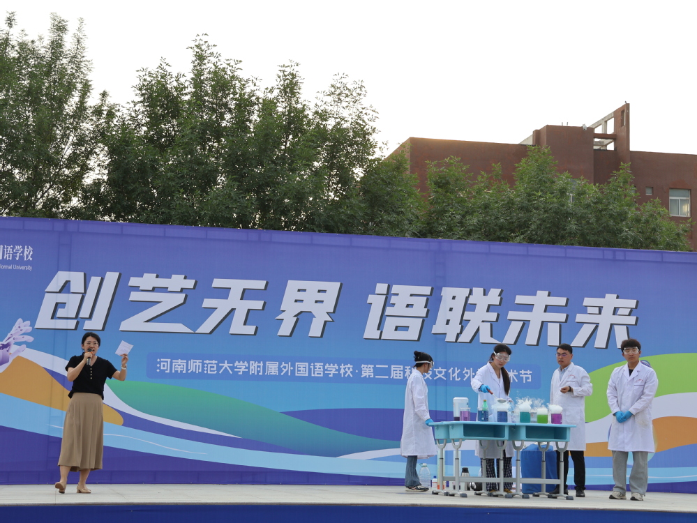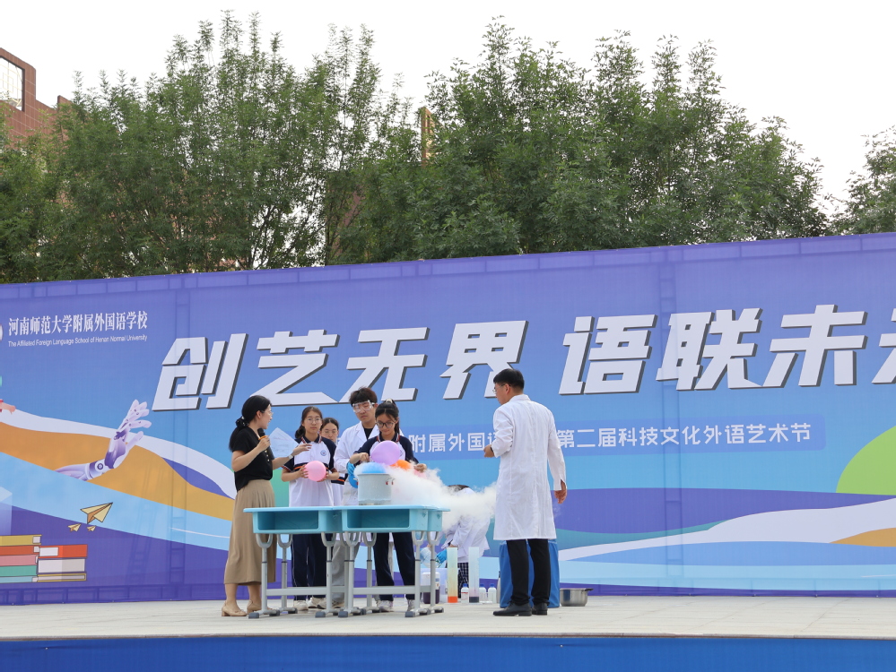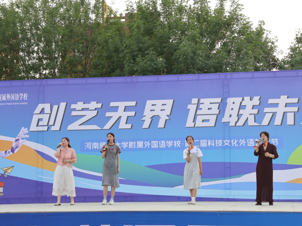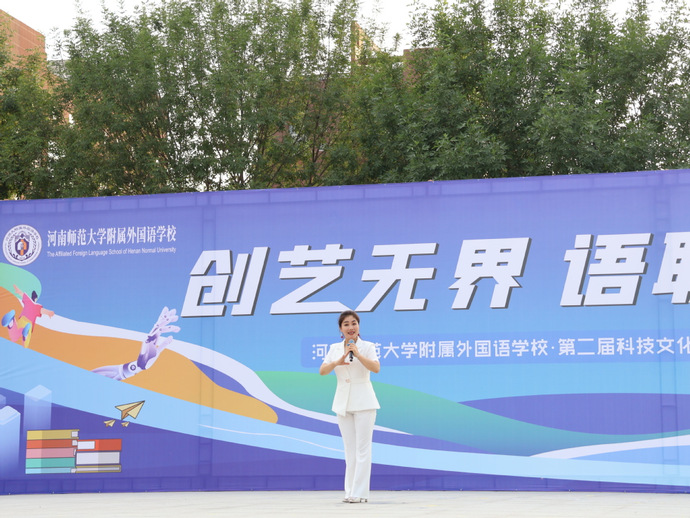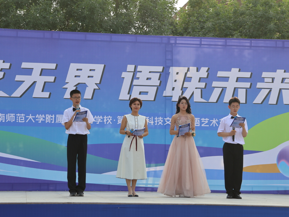 本次开幕式由新乡电视台主持人郝景怡与学生主持人邓雅文、卢泓旭、黄奕然搭档,以“中英双语”形式串联全场。开幕式融合科技、艺术、外语三大元素,打造了一场跨学科的视听盛宴。