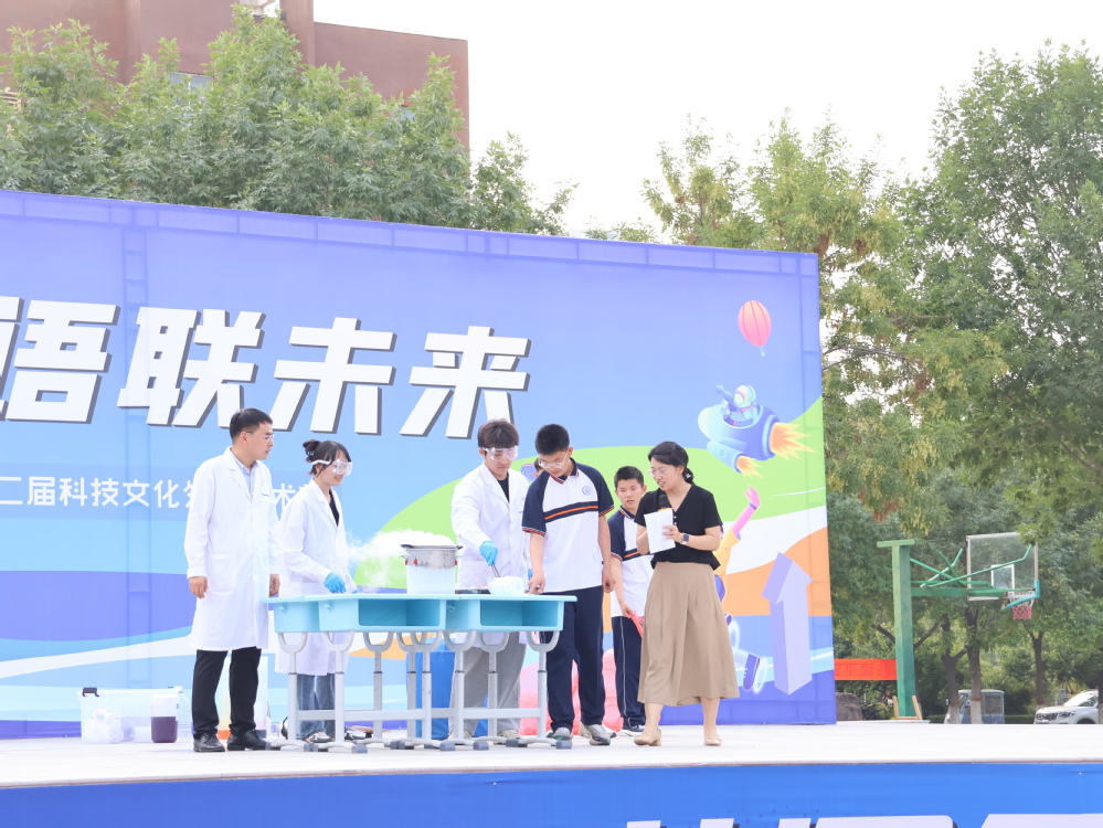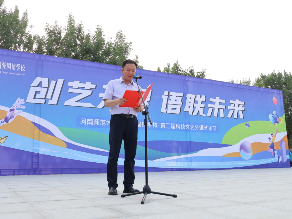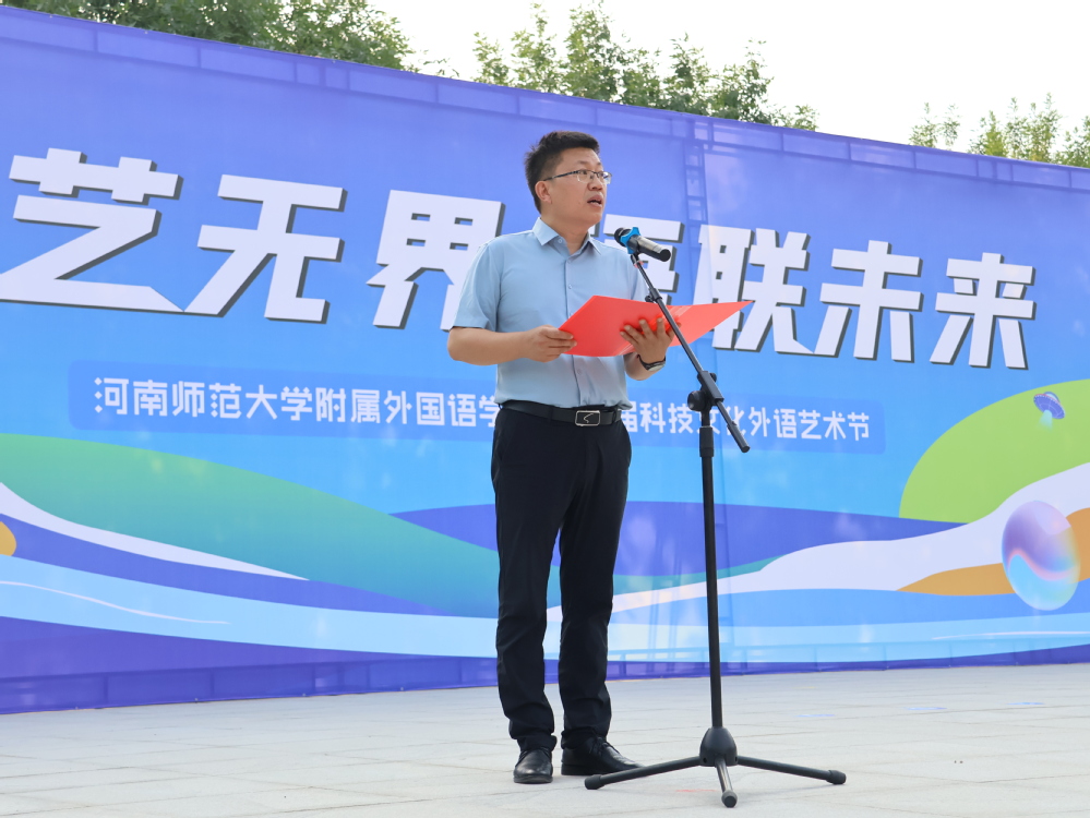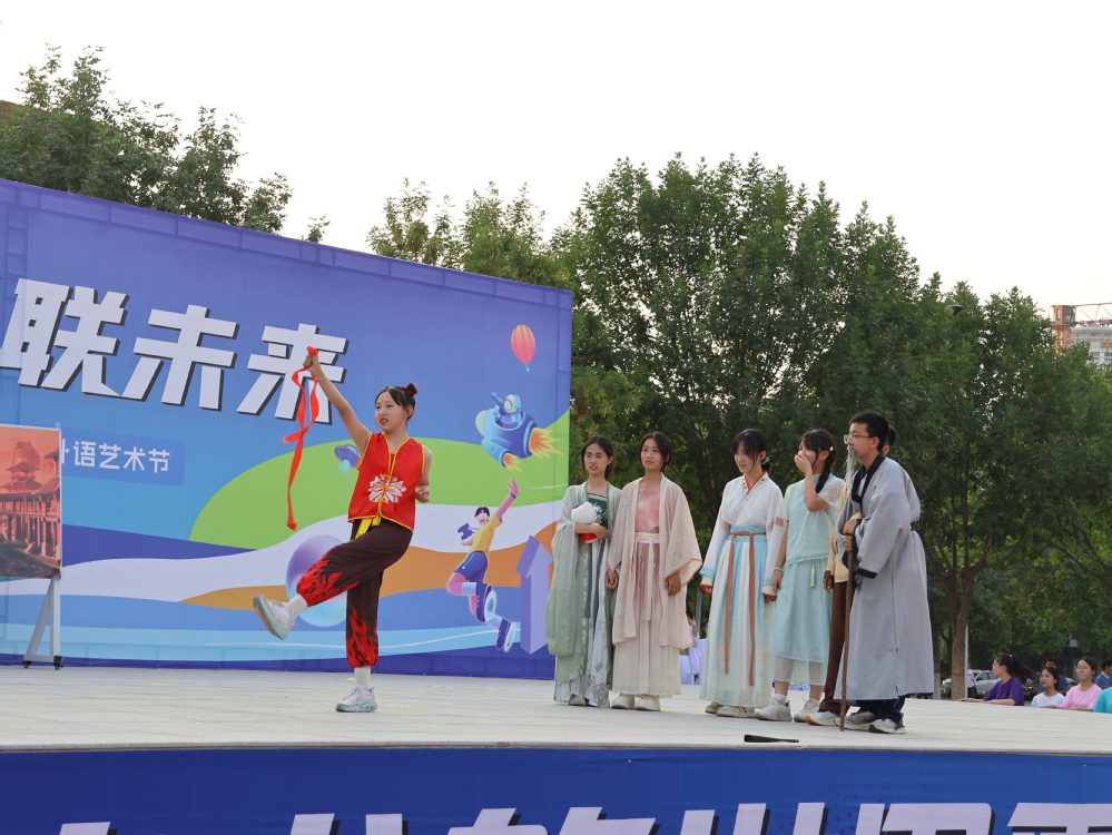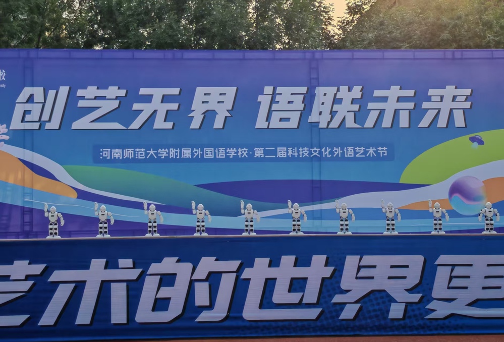 本次开幕式由新乡电视台主持人郝景怡与学生主持人邓雅文、卢泓旭、黄奕然搭档,以“中英双语”形式串联全场。开幕式融合科技、艺术、外语三大元素,打造了一场跨学科的视听盛宴。
