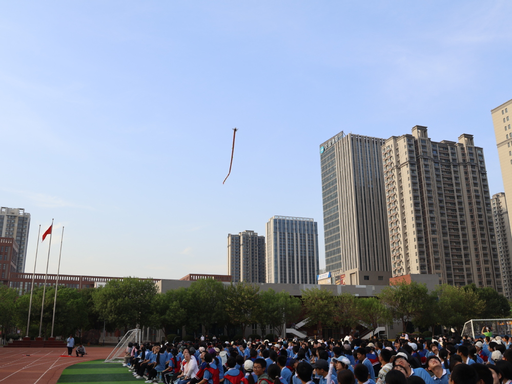科技展示环节中,无人机腾空而起,在天空中勾勒出绚丽图案,为开幕式增添了震撼的未来感,引得现场师生阵阵惊呼。