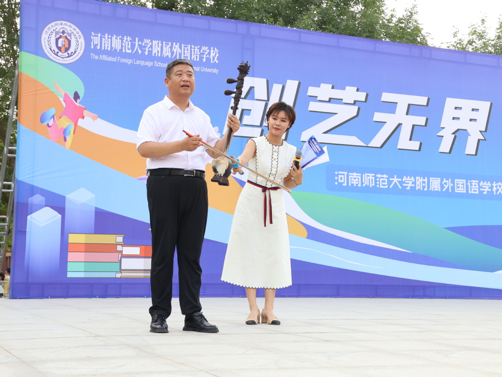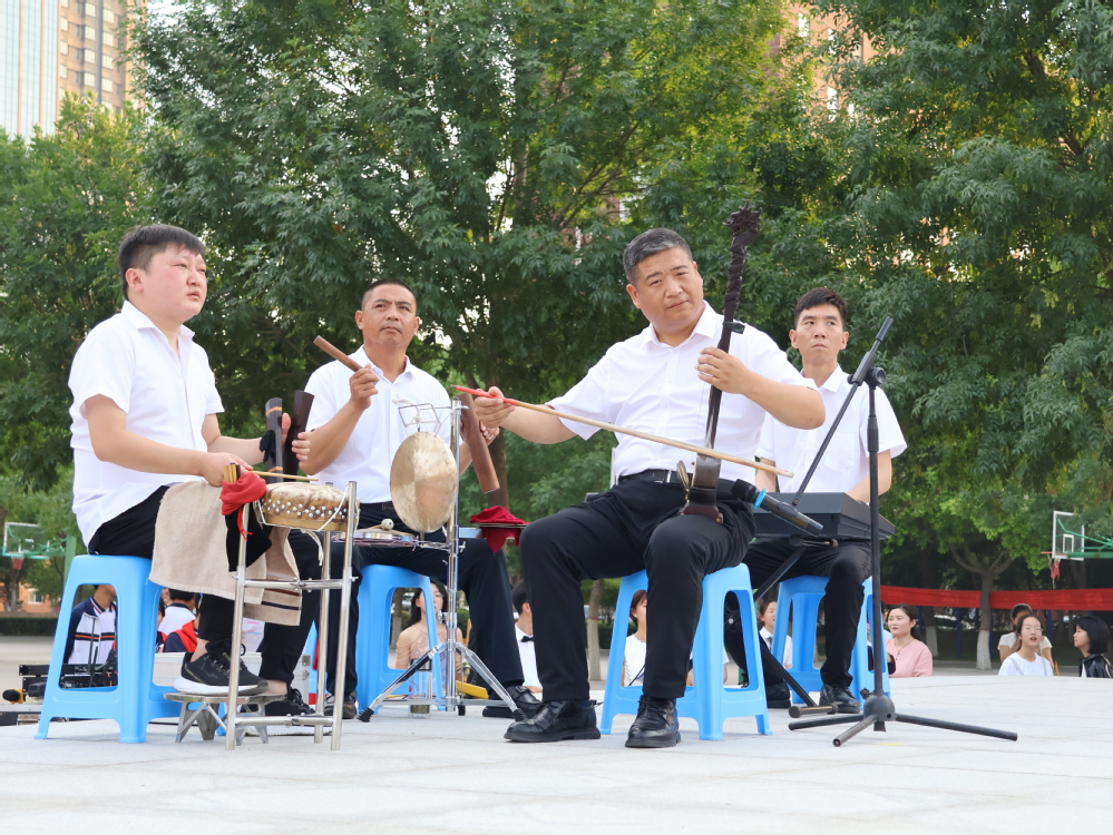 二级演员、著名豫剧表演艺术家王清芬亲传弟子、河南省戏剧家协会会员、新乡市戏剧化协会理事刘亚飞老师为我们带来豫剧《花木兰》选段——《刘大哥再莫要这样盘算》《谁说女子不如男》,其高亢激昂的唱腔与精湛的表演,带领观众共同领略了传统戏曲的韵味。豫剧团的老师还为大家普及了传统乐器的知识。