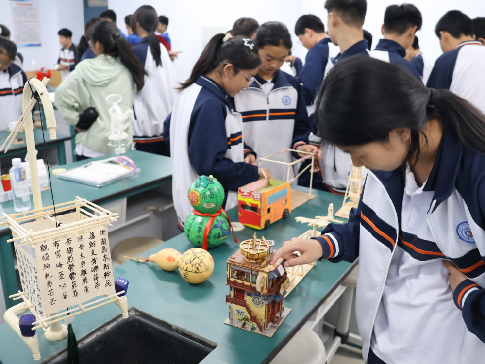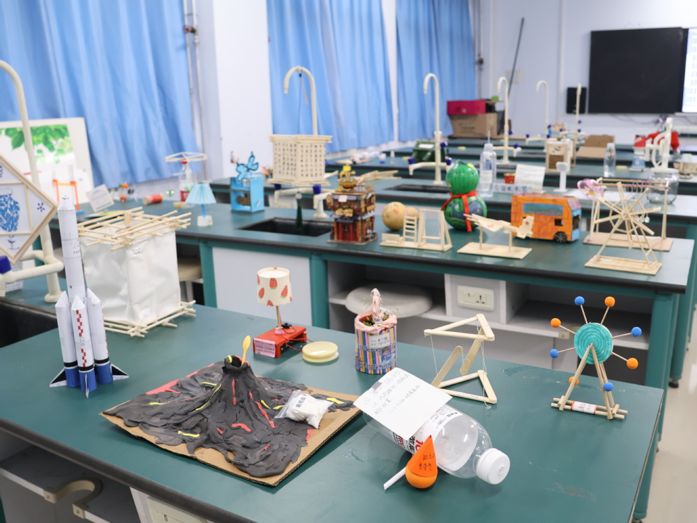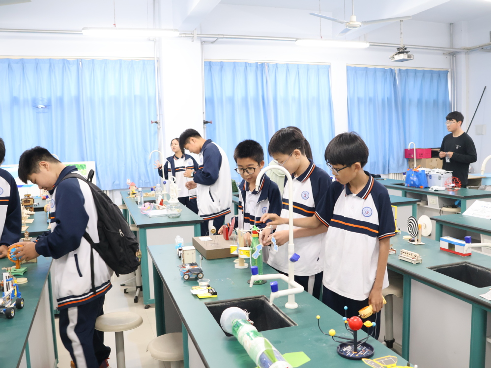实验室变身开放式科技展厅,学生原创科技作品在此一一陈列。从环保节能装置到智能模型,从机械传动结构到编程机器人,每件作品都凝结着创作者的巧思。同学们不仅可近距离观察,更能亲自动手体验部分装置的操作原理。这场看得见、摸得着的科技展览,让抽象的理论知识转化为触手可及的现实应用,充分激发同学们的创新思维。