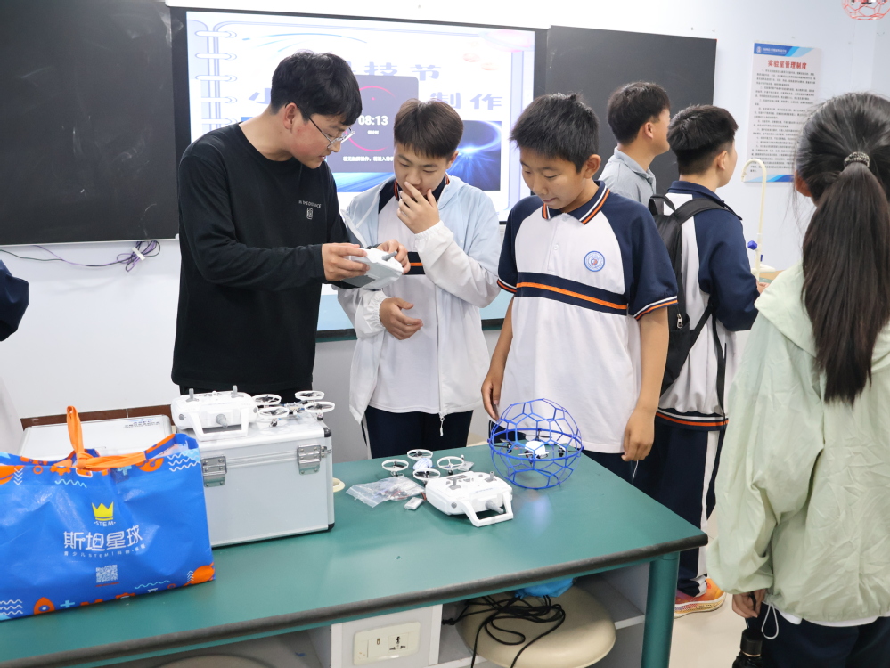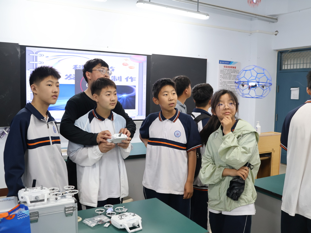 来自伟德官网下载苹果版的学生制作的无人机在现场进行展示。同学们怀着好奇与兴奋的心情,在学长们的指导下控制无人机完成起降、悬停、回旋等动作。螺旋桨的嗡鸣声中,科技教育的立体化实践跨越校际界限,为青少年播撒航空科技的种子。