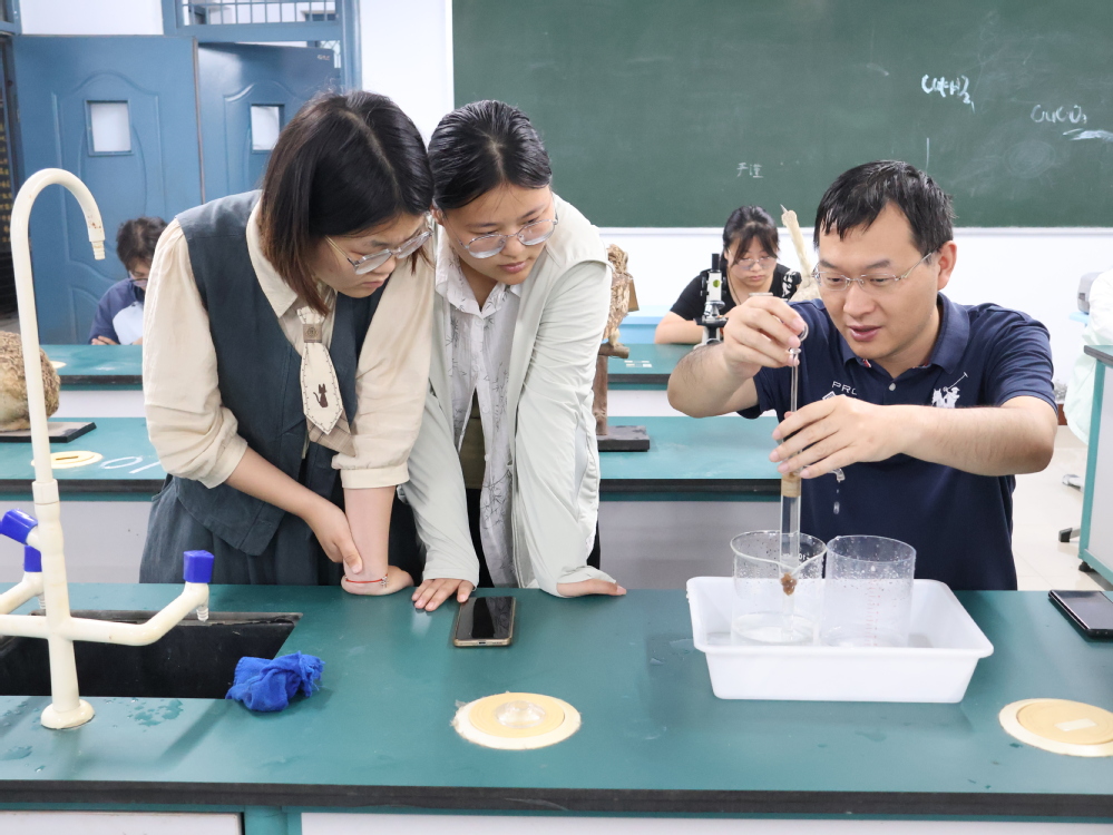 在实验室里,我校理化生教师为学生们带来了一场精彩的实验演示。他们运用各种实验仪器,向学生们展示奇妙的实验现象,并详细讲解实验背后的奥秘。干冰瀑布营造出云雾仙境,酸碱中和反应绽放彩虹色彩,电磁感应让铜管悬浮起舞。一个个实验将教材中的文字知识转化为可视化的神奇现象,同学们积极互动体验,在实验的神奇世界中探索科学的原理。