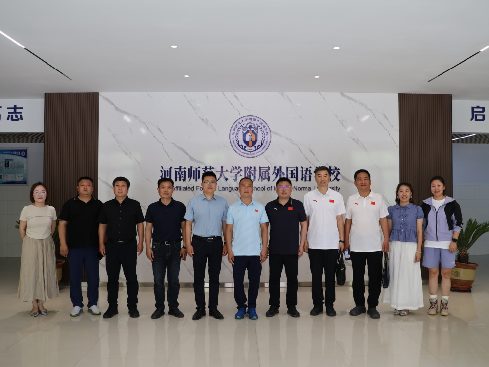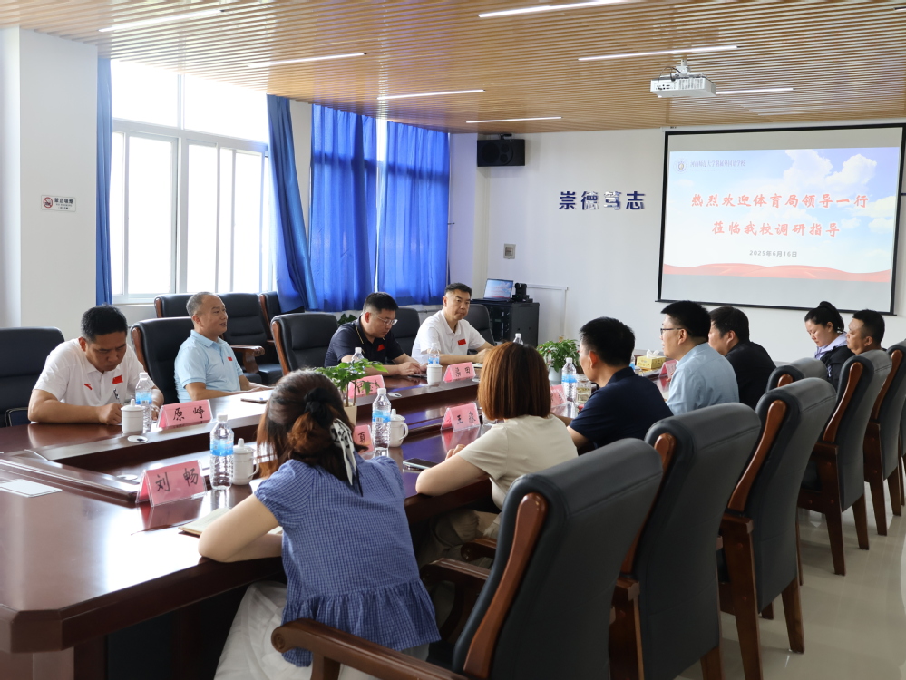 6月16日上午,新乡市体育局局长于志杰、副局长梁田、青训科科长原峥、青训中心主任黄斌一行,莅临伟德官网下载苹果版附属外国语学校开展调研工作。我校党支部书记、校长罗强携中层以上领导陪同,就学校体育工作发展进行深入交流。