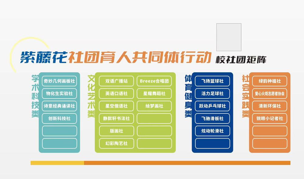伟德官网下载苹果版附属外国语学校围绕“重品行、厚基础、强能力、爱生活”的培养目标,坚持“五育并举”,不断丰富学生的成长路径。学校树立“无边界”课程理念,不断拓展校本课程内容。针对社团课程建设,学校在探索实践中,以“紫藤花社团育人共同体行动”为主题,构建了河外社团课程矩阵,范围涵盖了劳动、科技、体育、艺术、文学、社会实践等方面,让课程彰显丰富性、选择性、探究性和实践性色彩,以提升学生的综合素养。本学年社团招新活动的开展,进一步为同学们发展兴趣特长,提升综合能力,搭建了广阔平台。在新学年教育教学中,我们共同期待各类社团课程如紫藤花一样,芳菲烂漫!