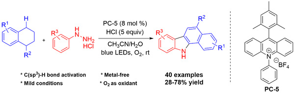 3.Jiaxuan Shen,* Nannan Li, Yanjiang Yu, and Chunhua Ma*Visible-Light-Induced Oxidation/[3 + 2] Cycloaddition/Oxidative Aromatization to Construct Benzo[a]carbazoles from 1,2,3,4-Tetrahydronaphthalene and Arylhydrazine Hydrochlorides.Org. Lett. 2019, 21(17), 7179-7183.