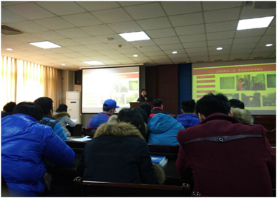 学生就业工作站、“沁心化苑”心理咨询室负责人杨明国、曹锟分别介绍了两个平台的筹建过程、服务功能、咨询流程等。