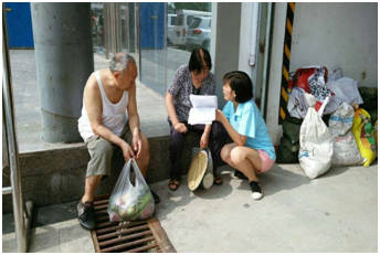 在新乡牧野湖边散步的赵大妈,接到女队员递发的调查问卷时,饶有兴致地说道,“这是好事儿呀,对大家伙儿有好处,丫头,大妈支持你们!”