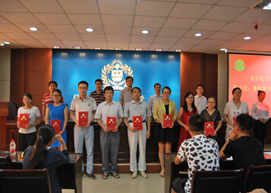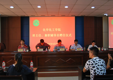 郭玉明副院长解读了《化学化工学院班主任管理办法》和《化学化工学院兼职辅导员管理办法》。李朝阳副书记宣读了《化学化工学院关于班主任、兼职辅导员的聘任决定》,此次共聘任27名优秀青年博士教师和5名优秀硕士研究生分别担任本科生班主任和兼职辅导员。随后,与会领导为各位班主任、兼职辅导员颁发聘书并合影留念。老班主任代表李慧珍、新班主任代表辛鹏洋、兼职辅导员代表王曼曼和学生代表宋依函分别发言。