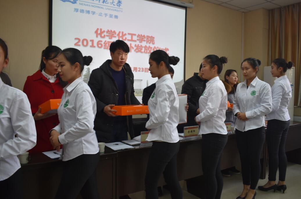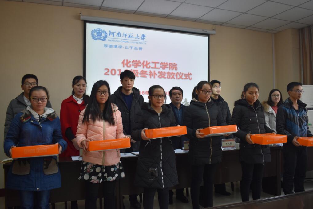 情暖寒冬,与爱同行。11月23日,我院于化学北楼N102举行2016级冬补发放仪式。我院党委副书记李朝阳,党委办公室副主任刘起胜,团委指导老师曹锟,2016级辅导员王曼曼及各年级兼职辅导员出席此次活动,2016级冬补受助学生参加了活动。王曼曼老师担任主持人。
