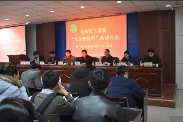 仪式在庄严的国歌声中拉开序幕。院党委办公室副主任、学院学生工作领导小组办公室负责人刘起胜宣读了《化学化工学院“安全教育月”实施方案》。会上,学院成立了安全教育宣讲队,学院党委委员、副院长郭玉明为宣讲队指导老师颁发了聘书,与会领导为宣讲队成员佩戴了工作牌。党委保卫部副部长、保卫处副处长杨海山强调了开展安全知识宣讲和安全教育的重要性。学院党委副书记李朝阳作了动员讲话,并安排了下一阶段有关工作。启动仪式结束后,保卫处办公室主任、我院安全教育宣讲队指导教师曾凡伟、化学实验教学中心孙东、学生处学生公寓服务中心副主任张鼎肃分别对全体学生骨干进行了综合类安全、实验安全和宿舍安全专题培训。