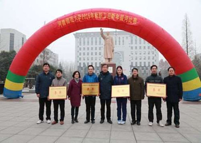 12月29日下午,我校2016年教职工迎新年拔河比赛在西校区图书馆前广场举行。校长常俊标、副校长孙先科、校工会主席岳杰勇等领导到现场观看了比赛。我院代表队获得季军,我院部分教师到场为学院参赛队鼓劲加油。