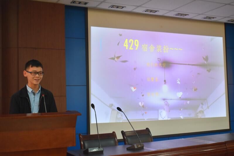 4月25日中午,院于化学北楼五楼会议室举办了学生党建进宿舍系列活动之宿舍装扮PPT展示评比大赛。该活动由院学生会生活部和自律部联合主办。特邀院党委副书记李朝阳,团委指导老师曹锟,2014级与2016级兼职辅导员担任评委。2016级百余名同学参加了此次活动。