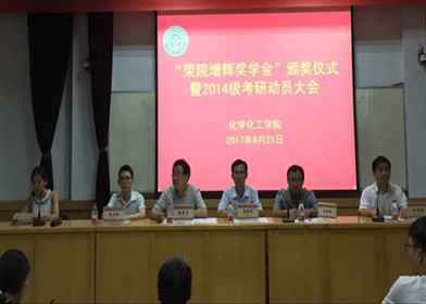 院长张贵生向2014级同学作了考研动员讲话,他首先分享了自己当年考研考博的经历,并分析了近几年化学化工学院考研报考和录取情况,鼓励大家在对自己进行科学评估的基础上,理智客观地做出报考院校的选择,最后要注意培养逻辑思维及实验动手能力,认真准备考研复试。院党委书记来俊军在讲话中强调了“感恩”的深刻内涵和对个人成长发展的重要意义,希望同学们在考研路上坚定信心、坚持不懈,以良好心态和拼搏精神,努力实现自己的美好理想。