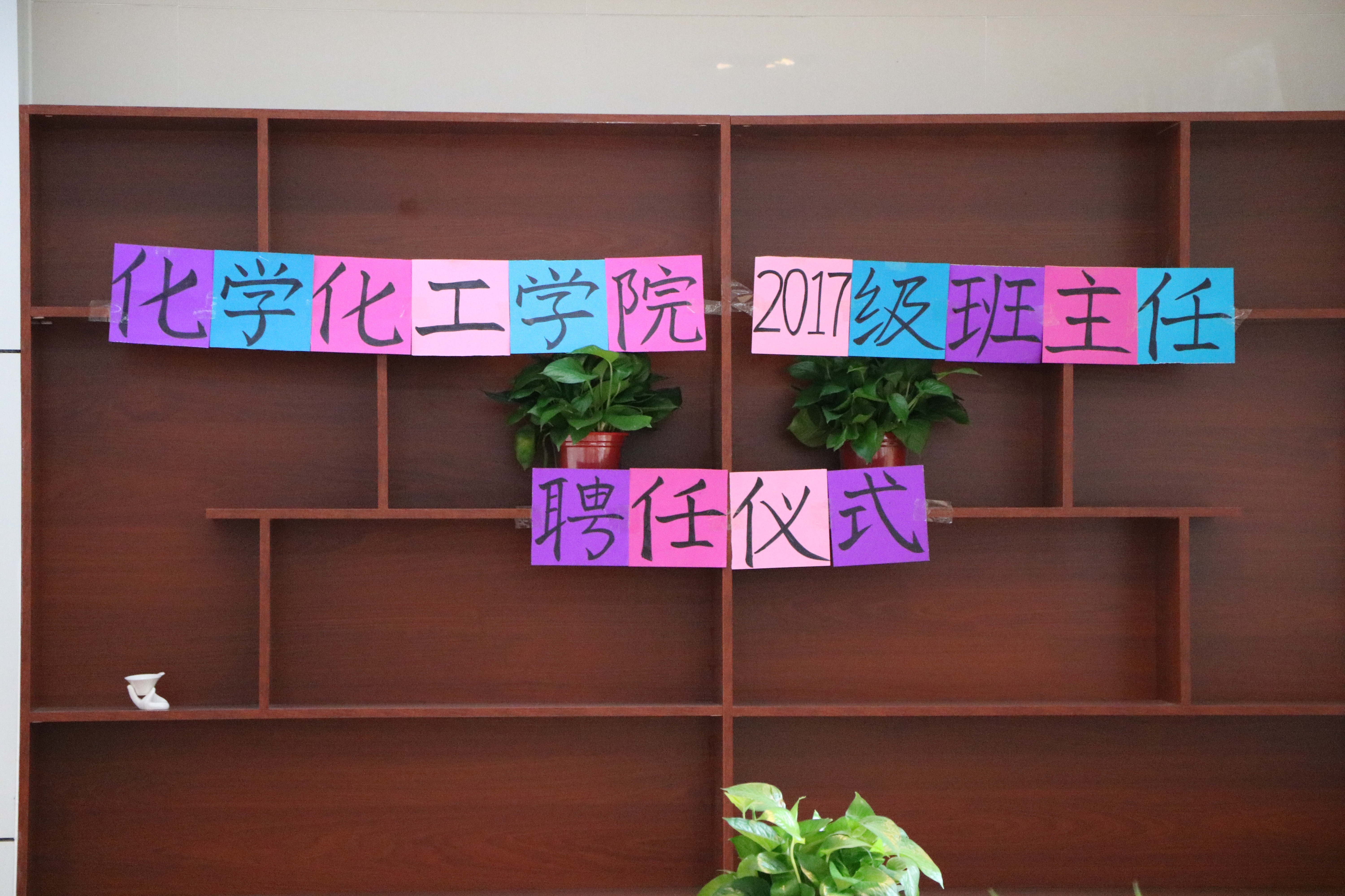 10月25日下午,我院2017级班主任聘任仪式在化学北楼二楼沁心茶吧正式举行。化学化工学院党委副书记李朝阳,新生辅导员卢鑫与各位班主任亲切座谈,并颁发聘书。