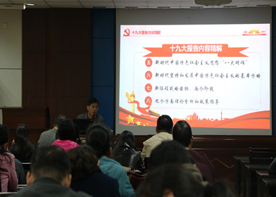 10月31日下午,院党委按照校党委工作部署,在化学北楼五楼会议室举办党的十九大精神集中宣讲活动。校党委办公室主任孔国庆教授担任主讲,全院教职工聆听了报告。会议由院长张贵生主持。