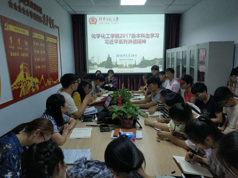 为深入学习贯彻习近平总书记在纪念马克思诞辰200周年大会上和在北大师生座谈会上的重要讲话精神,增强新时代青年大学生实现中华民族伟大复兴的使命担当,5月24日中午,化学化工学院2017级党支书成员、兼职辅导员、全体入党积极分子及主要学生干部于西寓八号楼党建工作室学习习近平系列讲话精神。