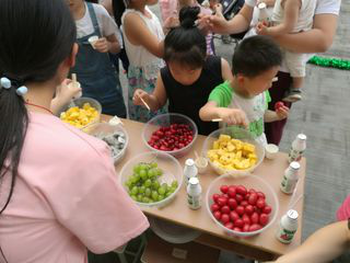 下午五点老师和孩子们陆续到达游泳馆北侧,在场的工作人员为小朋友们分发气球,棒棒糖,AD钙奶。活动伊始,主持人对各位老师及孩子们的到来表示热烈欢迎。在活动主持人周慧香的引导和互动下,孩子们情绪高涨,笑容洋溢。各位游戏负责人介绍完游戏规则后,孩子们迫不及待,纷纷跑到游戏活动区域跃跃欲试。投球游戏,你画我猜,指压板传球,过河拆桥等等,表现好的小朋友会得到精美的礼物。老师和小朋友们配合完成游戏,现场气氛活跃。现场还准备了美味可口的水果拼盘,供老师和孩子们品尝。此后,曹老师为参加活动的小朋友们发放六一礼物,孩子们都十分开心。