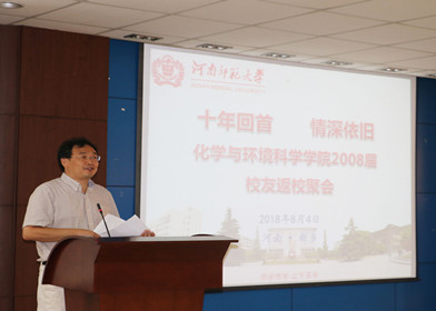 来俊军总结讲话,他指出学院近年来的发展是“有数据、有背景、有自豪、有决心”,并向各位校友传达了学校第十二次党代会确立的发展目标,即在建校一百年时候,化学学科力争进入国家一流学科,对校友们在校期间为学院和学校增光及离校以后十年的拼搏奋斗继续为母院和母校添彩表示衷心感谢。最后,他诚挚欢迎校友们经常回母院,并向校友们致以美好祝愿。