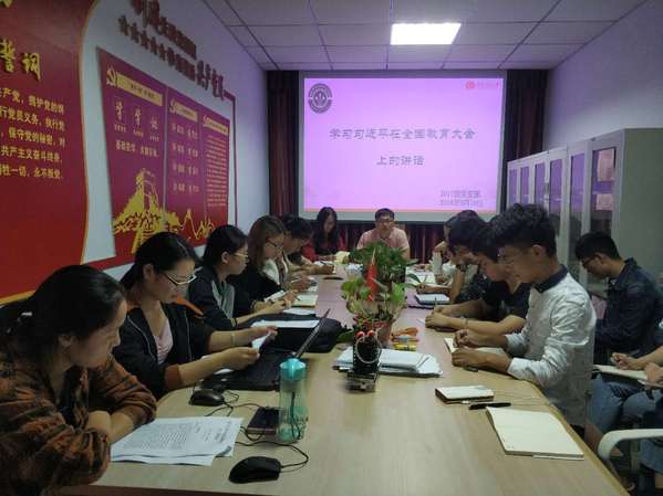 为深入学习习近平在全国教育大会上的重要讲话精神,鼓舞学生关心国家教育教师发展大事,践行“精育良才,教育报国”的师大精神。9月19日中午,2017级全国教育大会学习会在党建工作室召开,辅导员以及主要学生干部参加了此次会议。