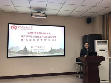 1月15日下午,化学化工学院2018年度党支部书记抓党建工作述职评议暨“五星级党支部”考评工作会议在化学北楼N102会议室举行,学院处级领导班子成员、党委委员、支部书记、支部委员、师生党员代表50余人参加会议。会议由院党委书记来俊军主持。