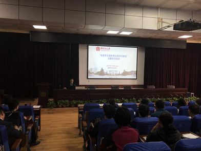 为深入学习贯彻党的十九大精神,进一步落实《中国共产党支部工作条例(试行)》要求,抓实基层、打牢基础,切实发挥党支部战斗堡垒作用和党员先锋模范作用,4月18日下午,我院在新五五四楼党校教室举行“加强党支部标准化规范化建设”主题党日活动,学院党委书记来俊军为学院全体师生党员上了一堂题为“发展党员工作和党支部标准化规范化建设”的党课。