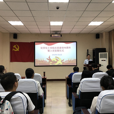 7月1日上午,我院在化学北楼N102会议室举行庆祝建党98周年暨入党宣誓仪式。学院党委有关负责人、学生党支部书记、预备党员、部分入党积极分子60余人参加了本次会议。