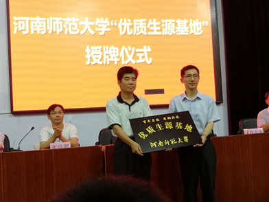 来俊军书记代表学校与柘城县一高签订了“伟德官网下载苹果版优质生源基地合作协议书”,并为其授予“优质生源基地”牌匾。