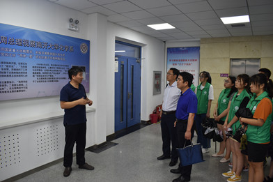 在东华大学,史向阳教授带领大家参观了纤维材料改性国家重点实验室并进行交流。他介绍了自己的学习成长经历、研究领域及部分学术成果,鼓励大家坚定专业自信,树立远大目标。
