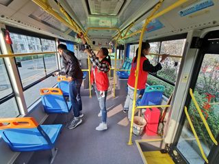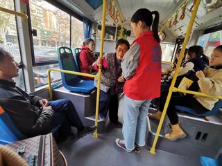 上午8点20分,志愿者们在东校区大门处集合。活动伊始,青年志愿者协会副会长与公交车负责人沟通了解相关事宜,为志愿者们讲述注意事项并分发工具。随后,志愿者们兵分两路,一队在阿姨的指导下对公交车进行清理,通过擦拭公交车玻璃、座椅、扶手等切实改善了公交车内的卫生情况,为市民们出行提供了干净舒适的乘车环境;另一队由负责人带领跟随公交车在途中搀扶上下车的老人、孕妇,帮忙提重物并维护乘车秩序,他们耐心友好的态度让市民们感受到了志愿者的温暖。活动期间,一位老爷爷和一位已经毕业的学长对此感触颇深,与志愿者们交流感受,场面十分暖心。最后,副会长对本次活动做出总结,志愿者们进行合影留念。至此,本次活动圆满结束。