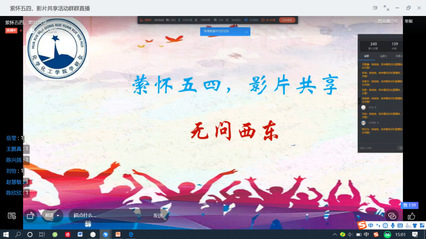 一首歌曲《无问》拉开本次活动的帷幕,主持人通PPT向大家简单介绍即将播放的影片《无问西东》。随后,学生共同观看电影。电影呈现的故事真诚感人,情节跌宕起伏,观看电影的同时许多同学在评论区交流自己对情节的看法与感受。影片结束后,同学们纷纷在评论区留言“爱你所爱,行你所行,听从你心,无问西东”,并连麦发表感悟。2018级化学专业张中旭表示:每个时代的人都有不同的结局,不知道是哭是笑。尽管结果不是那么美好,但他们都活出了自我。愿我们在迷茫时都能明白一代青年人的担当,听从我心,无问西东。