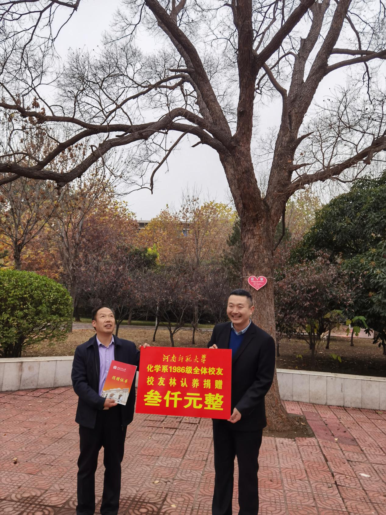 铭志于树,寄情于林。在离开之际,校友们在校中心花园举办了校友林认养捐赠仪式,出席活动的领导老师和校友们一起在认捐的大树下合影留念,让这一棵树寄存着所有校友对母校的感恩与爱,深深地根植于师大的土地上。