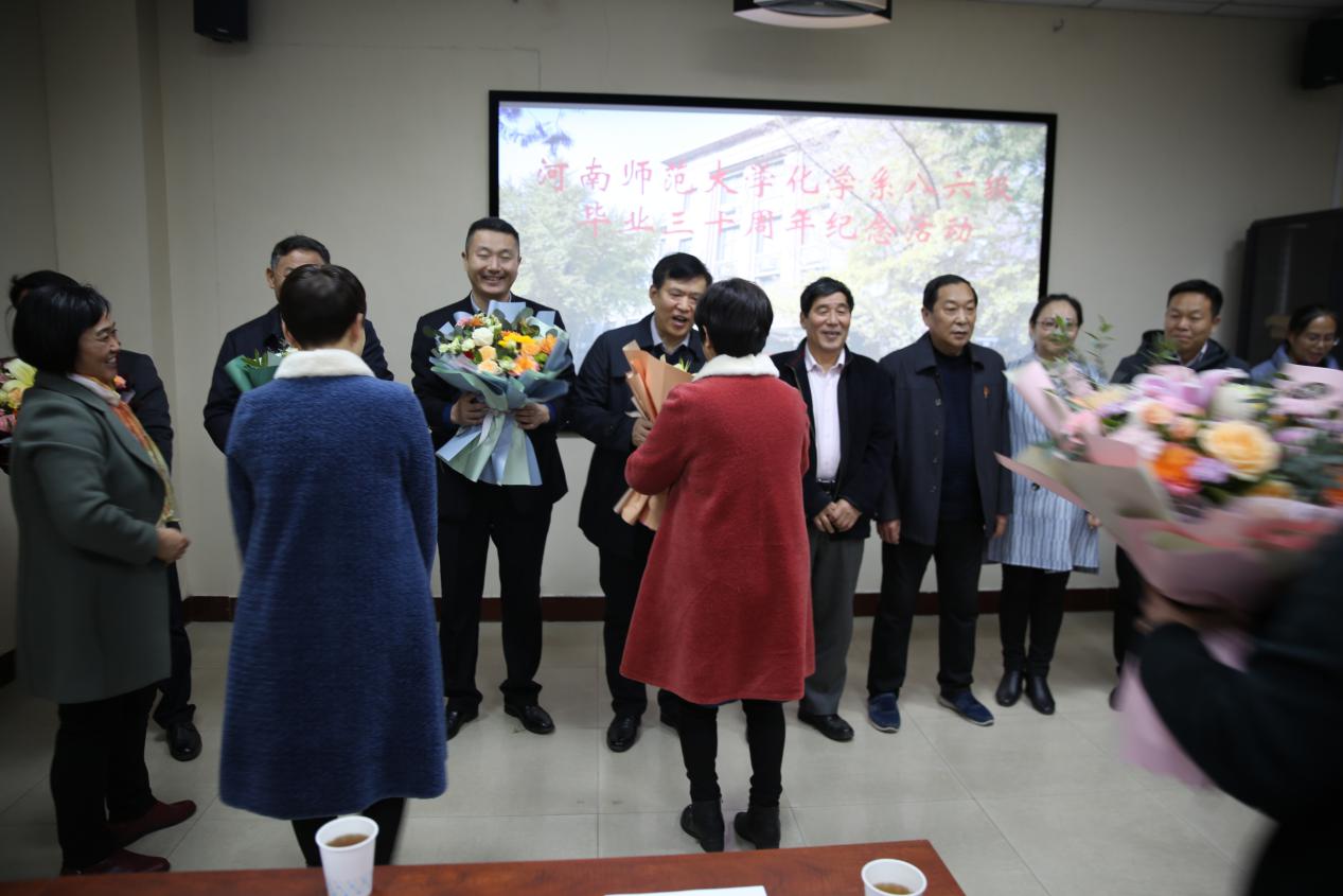 师恩重于山,师情永难忘。会议伊始,与会校友代表集体为出席会议的领导、恩师献上鲜花,感谢校友会和母系提供的帮助,感念师恩。