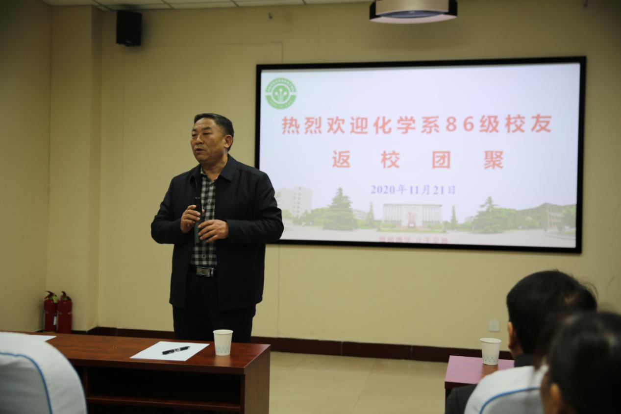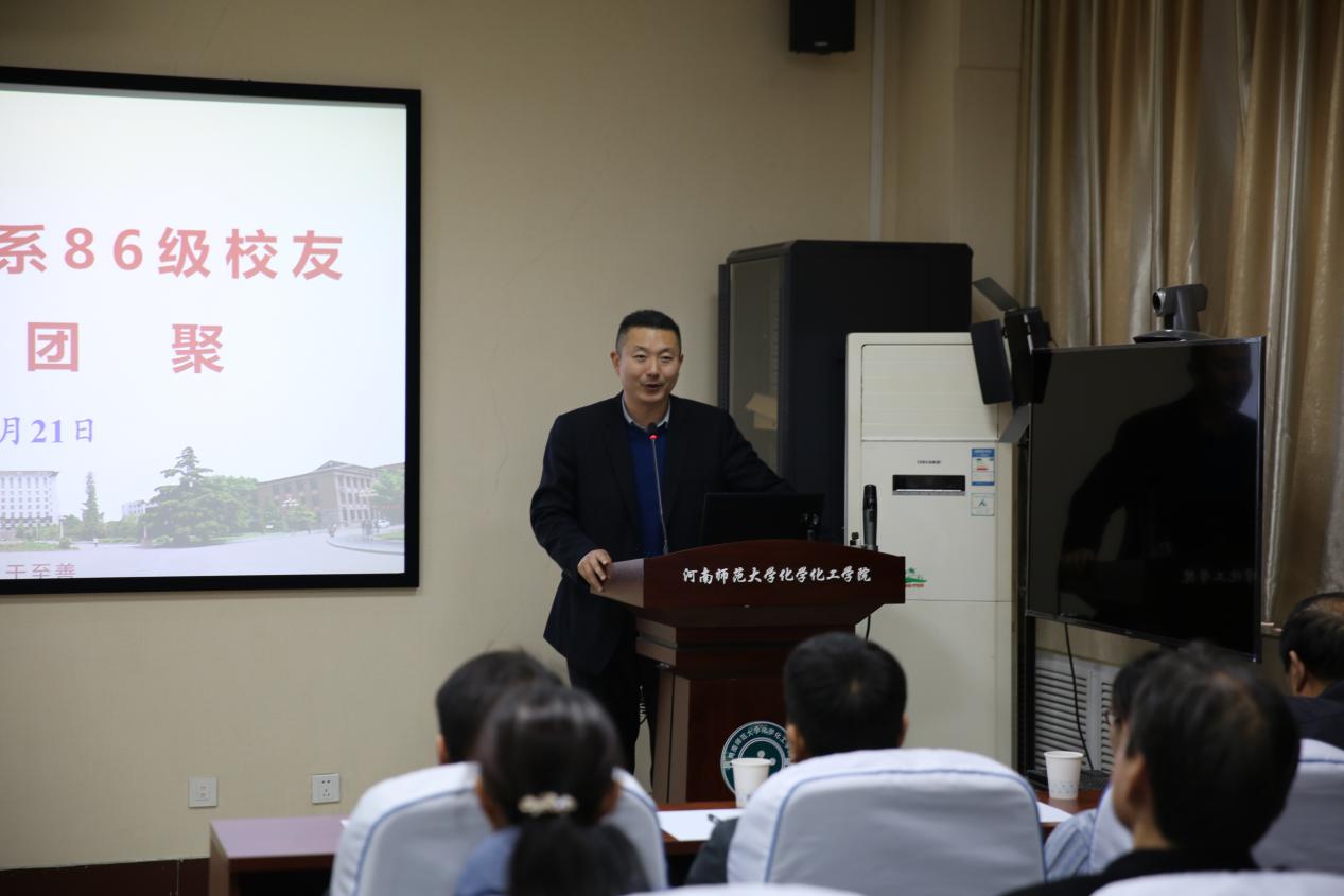 化学化工学院副书记李朝阳代表学院表达了对校友们回家的欢迎和喜悦之情。介绍了学院近年来在党的建设、教学科研、学科建设、人才培养等十个方面的发展状况和成就,希望校友们与母校母系多联系,继续关注、支持学院的发展,并邀请校友们常回家看看。