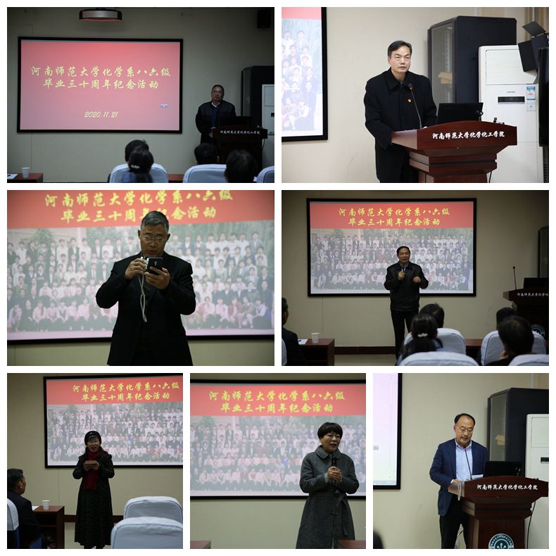 李晓彦、岳俊杰、尚炯、冯成铭、张海英、廖卫、陈科等校友代表纷纷上台发言,向老师们汇报了三十年来成长历程、人生感悟等,表达了对母校的深切思念以及重回母校、重见恩师、同窗的激动与喜悦之情,感恩母校的培养,感谢恩师的教导,并表示会继续怀着感恩之心关心支持学校发展建设,不辱师大校训,不负学校培养。