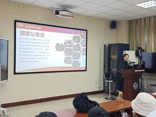英烈不朽,守护不息,精神不灭。活动伊始,由主持人播放南京大屠杀纪念片——《藏》,并向大家介绍南京大屠杀历史背景。接着,播放电影《金陵十三钗》、纪录片《拉贝日记》和南京大屠杀幸存者夏淑兰采访等片段,让大家从不同视角了解这段历史。随着会议室凌厉的警报声响起,全体人员起立对30万遇难同胞进行深切缅怀,对那段灾难历史的深刻反思。主持人讲解12月13日作为国家公祭日立法过程,及设立国家公祭日带来的现实意义,并和学生代表们一起组织大家书写和平寄语贴至寄语墙、带领大家一起朗诵《带血的屠刀》,向逝者表达最大的敬意。最后,学生代表李展博总结陈词,宣告团日活动圆满结束。