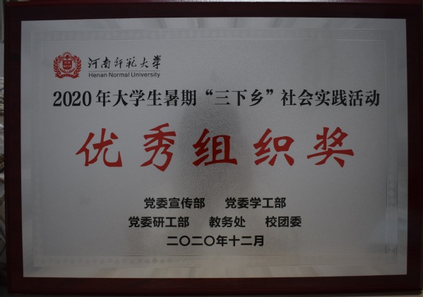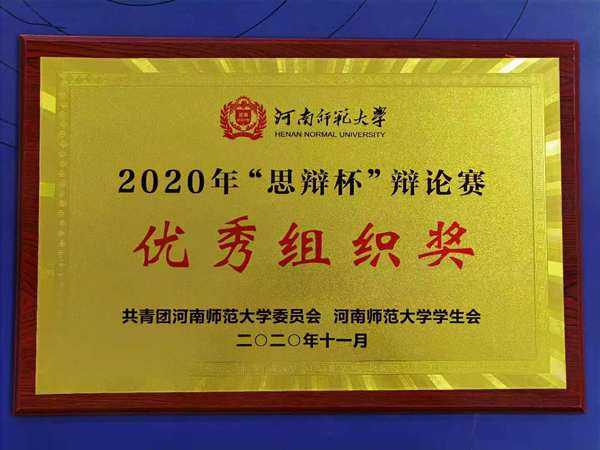 思辨杯优秀组织奖近日,我校2020年度“榜样师大”学生系统表彰大会在音乐厅举行,对本学年国家、省级重大赛事获奖和多项荣誉获得者进行表彰。我院荣获2019-2020年度学生工作先进单位及创新创业竞赛、暑期社会实践优秀组织奖等多项荣誉。