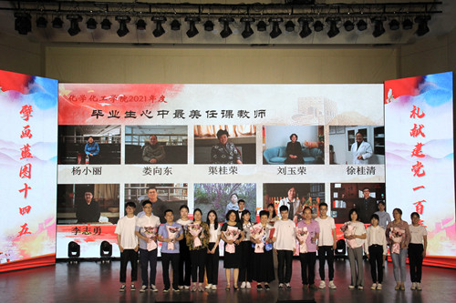 晚会间,学院还举行了“情满化院”师生集体生日会和“毕业生心中最美任课教师”颁奖典礼环节。其中,“最美任课教师”代表渠桂荣深情寄语毕业生,感谢同学们为师大留下的流光异彩,鼓励大家要坚持追梦,注重发扬团队精神,保持平和心态,风雨兼程,勇往直前。晚会现场气氛热烈,观众与演员积极互动。伴随着充满希望和力量的集体合唱,毕业晚会圆满落下帷幕。