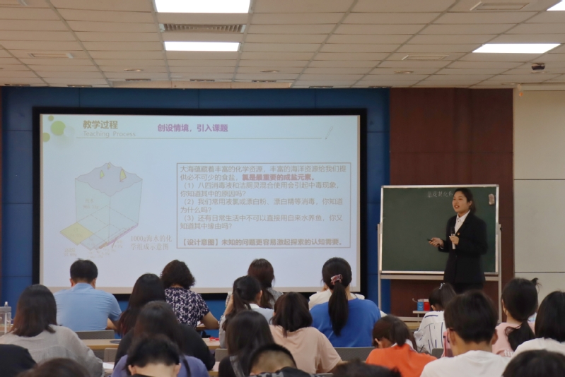 决赛前,学院各年级以电子教案设计和基础知识笔试、讲课展示等形式开展比赛海选和复赛,共10名选手进入最终决赛。决赛中,参赛选手从指定的五个课题中任选一个进行8-10分钟的说课展示和5分钟才艺展示;评委从说课能力、板书设计、普通话水平和教态等方面进行评分。选手们以化学最新新课程标准为依据,围绕“教什么,为什么教,怎么教”对教材教法、学情分析、教学过程展开讲述。选手们展现出的教学智慧、教学思维、教学技能和教师风采赢得现场掌声连连。